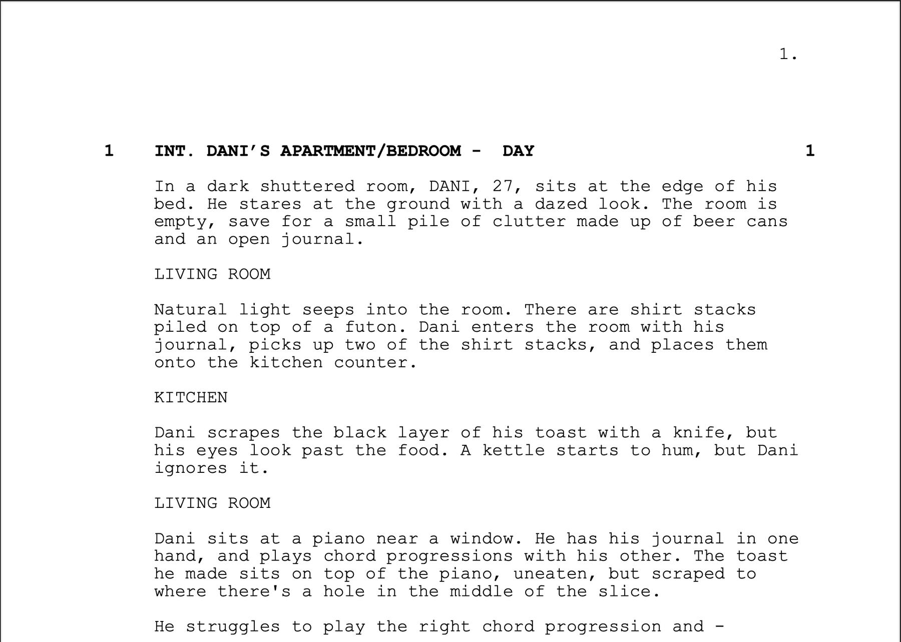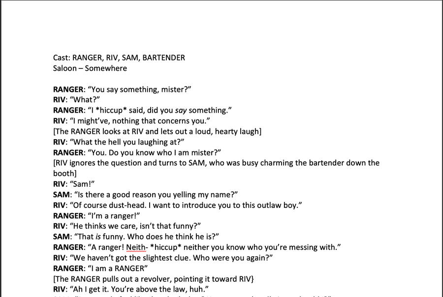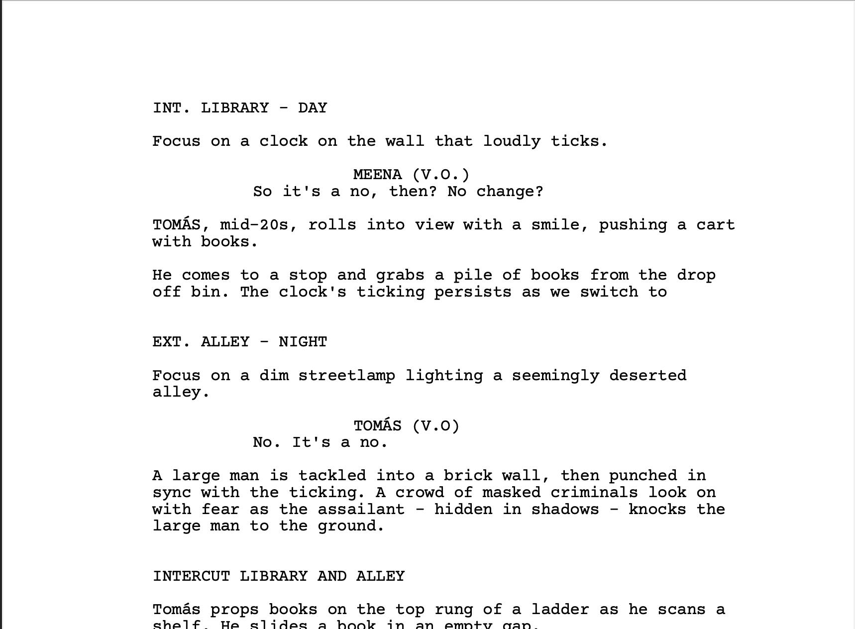 Longer-form work that demonstrates plot and scene consistency. Includes short prose and scripts.