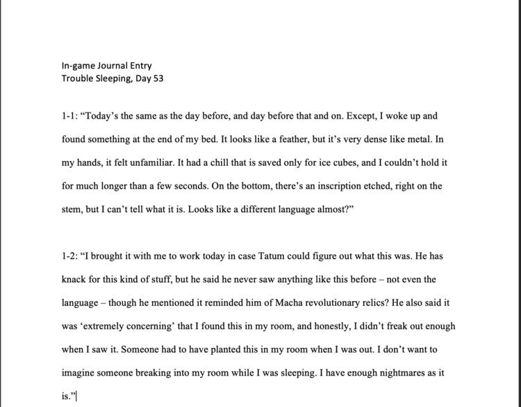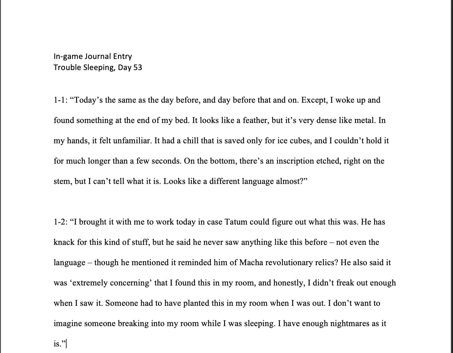 In-game Journal Sample 1