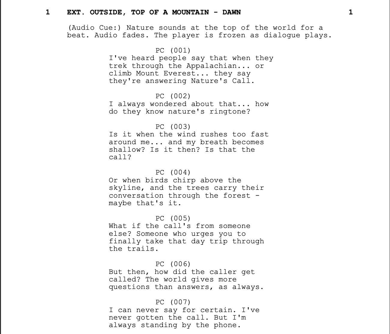 Lines written for a team project "The Call"